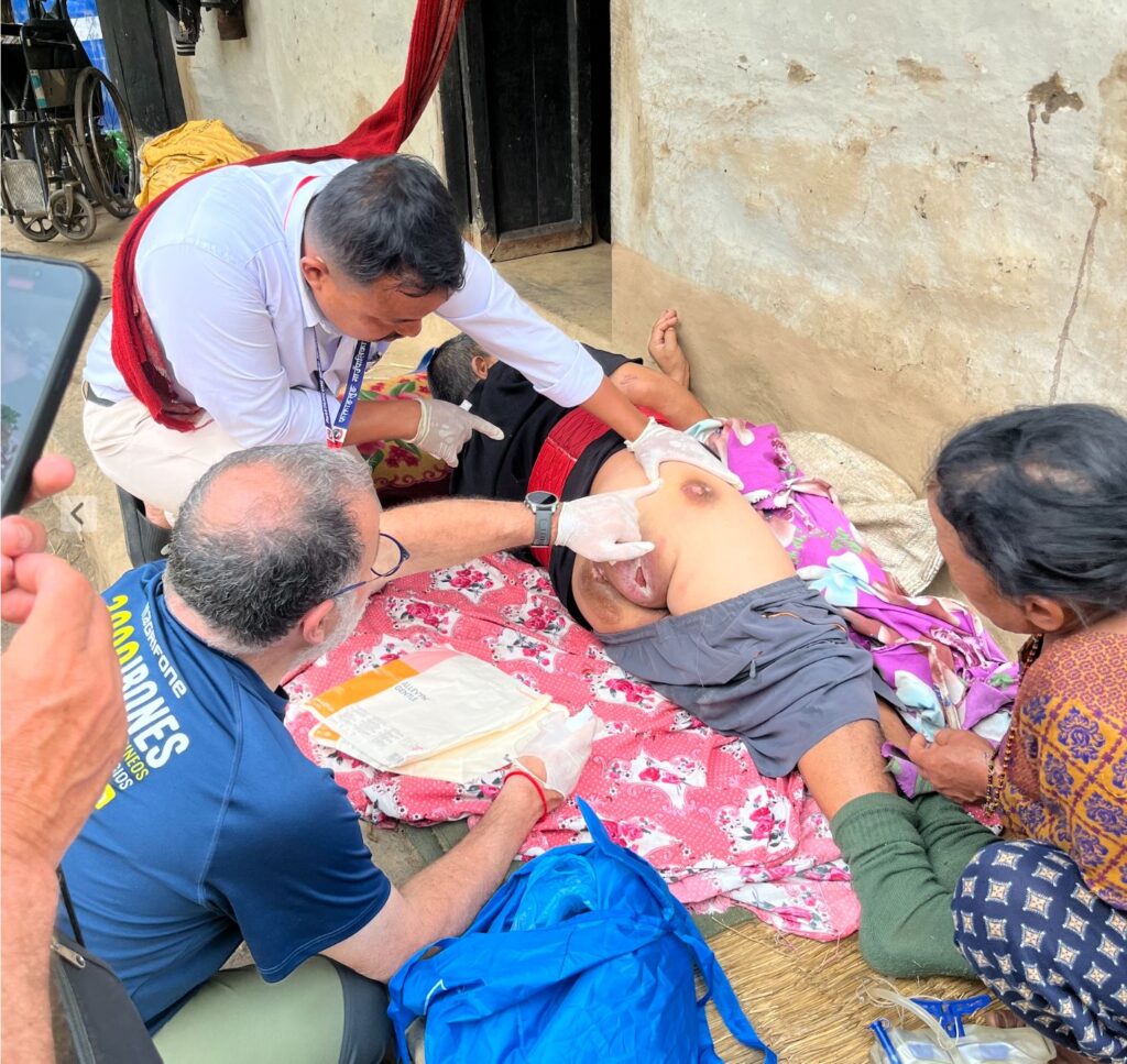 On 13 May 2025, we had our first contact with our patient in Nepal through Bisan. Santa, our first patient, is a paraplegic with a category IV pressure injury in the gluteal area.
